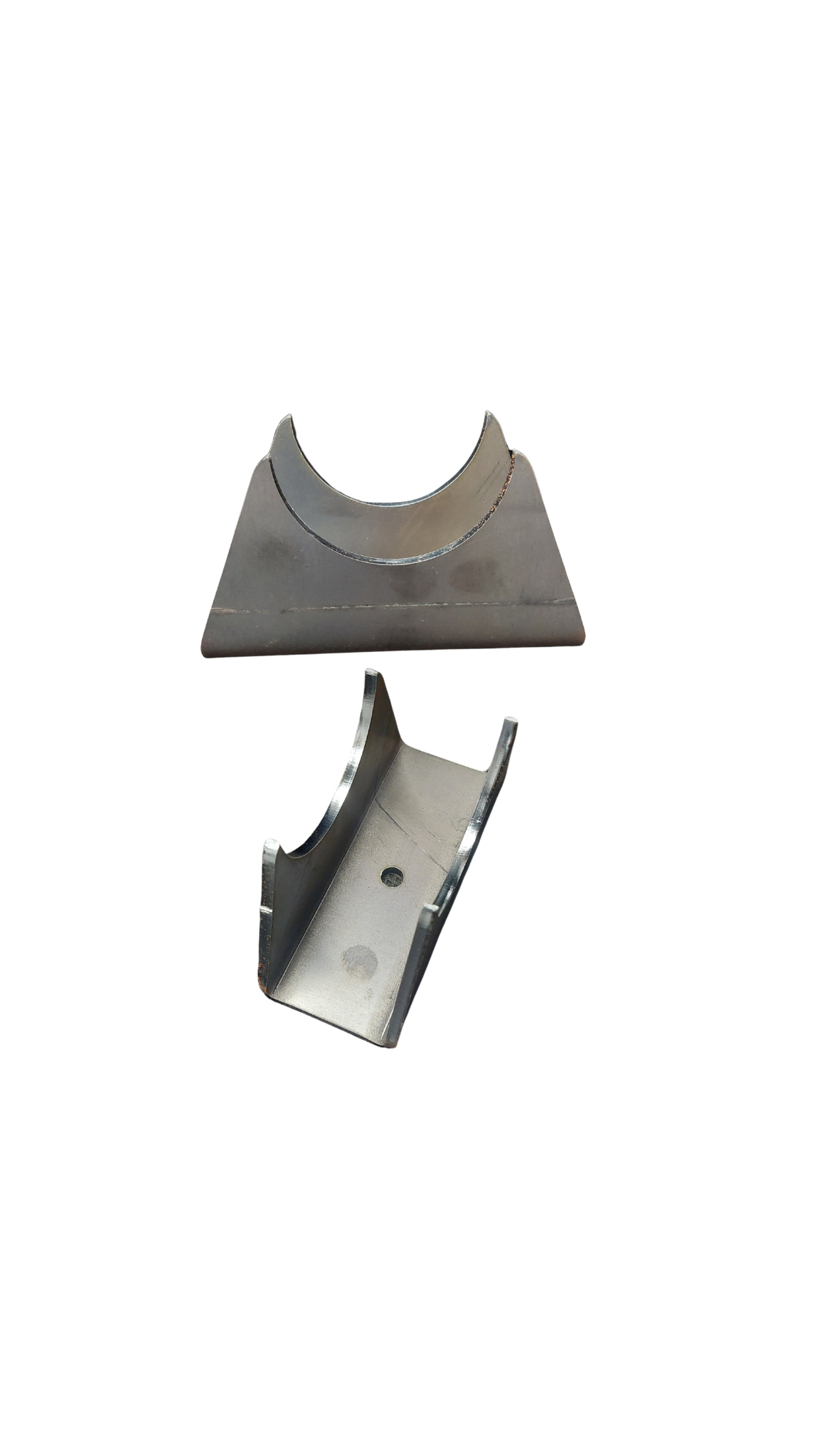 The saddles are laser cut and CNC folded ex. 5mm mild steel. The saddles are 60mm wide x 140mm long x 40mm high and they are notched for 3" tube.
