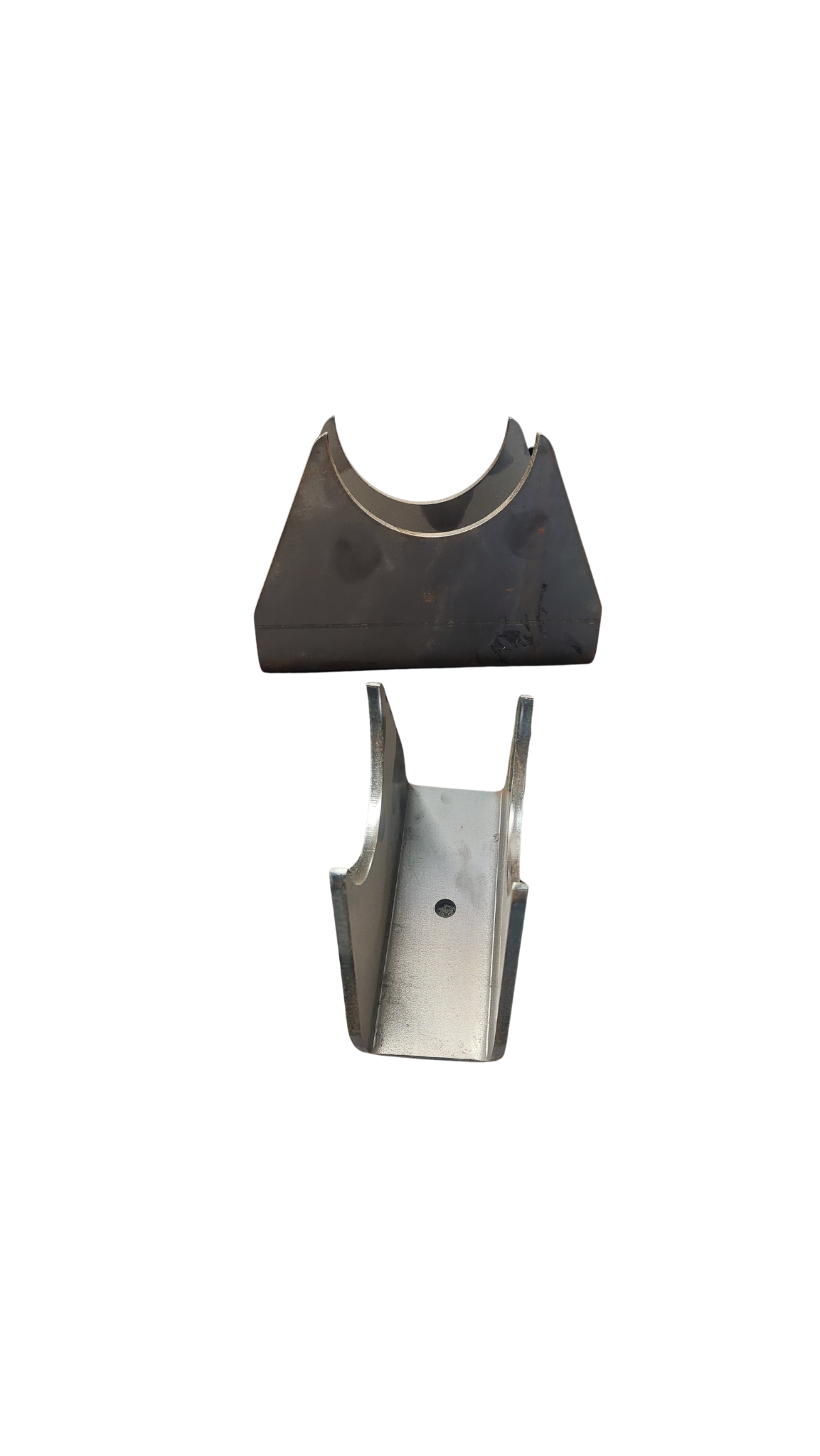 The saddles are laser cut and CNC folded ex. 5mm mild steel. The saddles are 60mm wide x 140mm long x 60mm high and they are notched for 3" tube.
